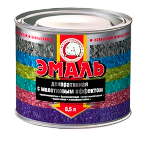 Назначение: эмаль с молотковым эффектом предназначена для защиты и декоративного окрашивания (или маскирования шероховатых поверхностей) загрунтованных стальных поверхностей, эксплуатирующийся как в атмосферных условиях, так и внутри помещений. Эмаль также может наноситься на бетонные, деревянные и некоторые пластиковые поверхности, однако образованное здесь покрытие будет менее рельефным.